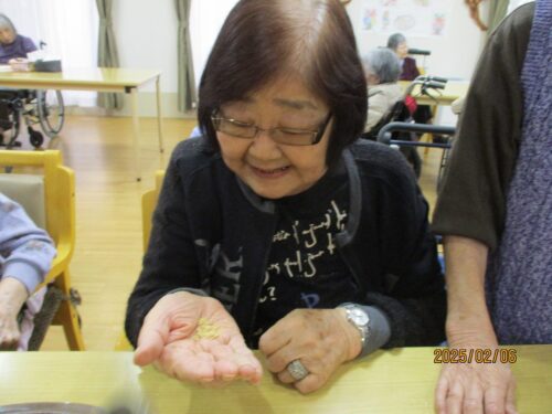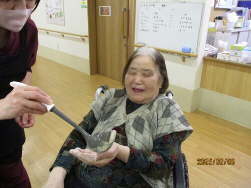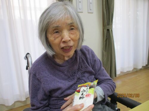 看板娘のご入居者さまに白玉粉を持って宣伝してもらいました