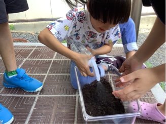 まず土をひいてお団子ができるくらいの硬さを目指して