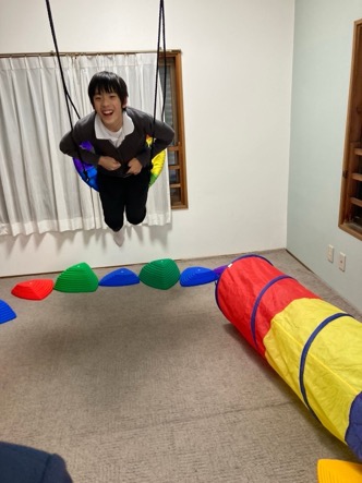サーキット遊びでは、トンネルくぐり、バランスストーン、トランポリン、ブランコの4つを使って、身体をしっかり動かしています!