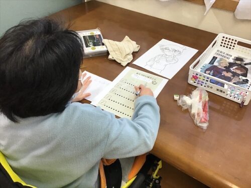 こちらの利用者様は、カードをケースに一枚ずつ入れる作業に取り組まれています。