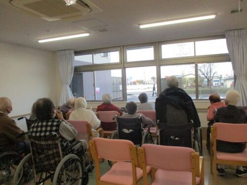 目の前の道路を通るという事で、