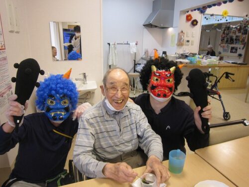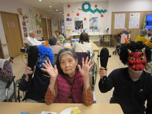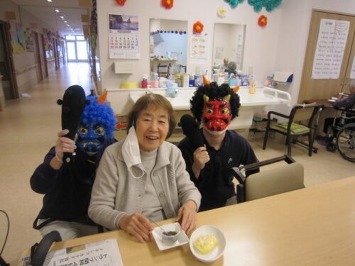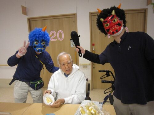 さわやかあおい館 節分【さわやかあおい館】 2025-02-09 2025-02-09 2月3日 1Fフロアでは、節分におやつレクを開催 「クレープ作り」です💕 事前に職員が焼いたクレープ生地に、自分の好きな物をトッピング✨ 最後に鬼も登場し、楽しい節分となりました。 🍒わたなべ🍒