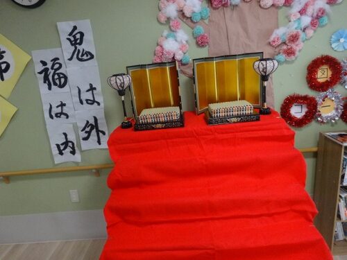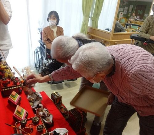 さわやか室蘭弐番館 2階 雛人形🎎♪ 2025-02-11 2025-02-11 皆様こんにちは♪ 2階の様子をお届けします 入居者様にご協力頂き 食堂で雛人形の飾り付けを行いました 上段から置いていきます 飾りを一つづつ置いていきます 完成間近です