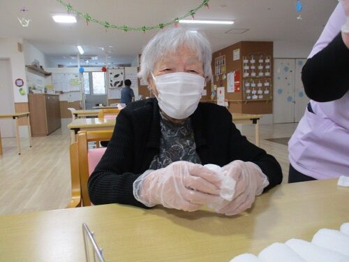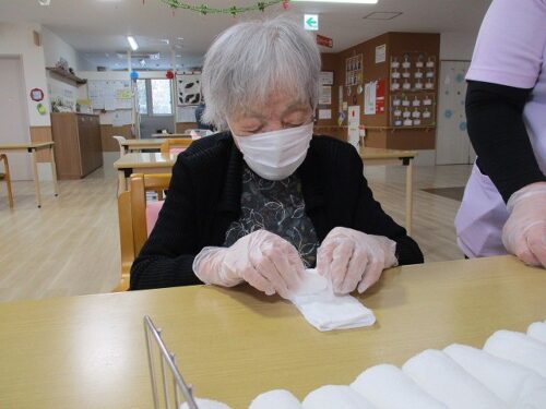 さわやか室蘭弐番館 3階 お手伝い♪ 2025-02-11 2025-02-11 皆様こんにちは♪ とある日の様子をお届けします 職員がおしぼりを畳んでいると 「どう畳むの?」 「やってみたいねぇ」と くるくる~ ありがとうございます☆