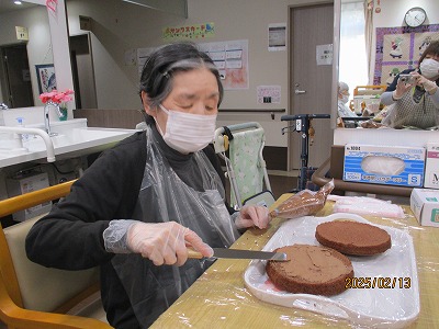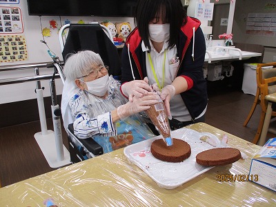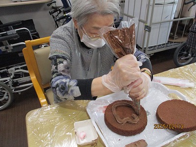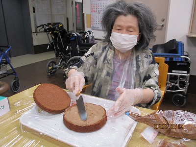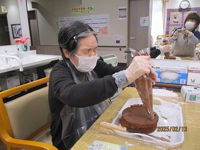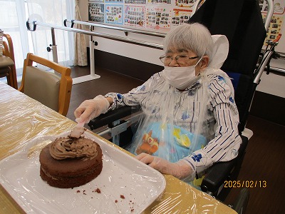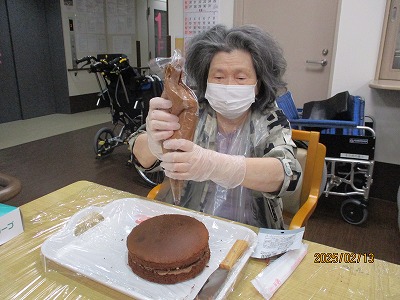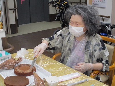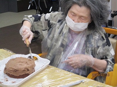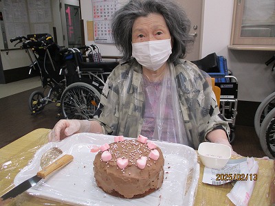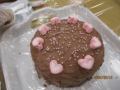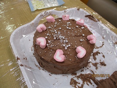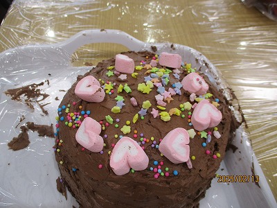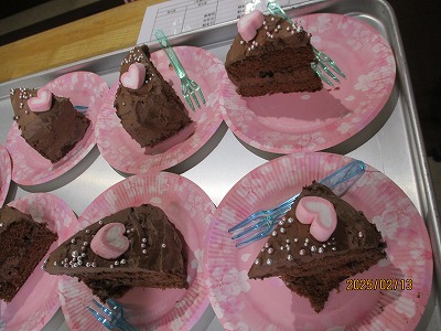 一日早いですが調理レクでチョコレートケーキを作りました💕