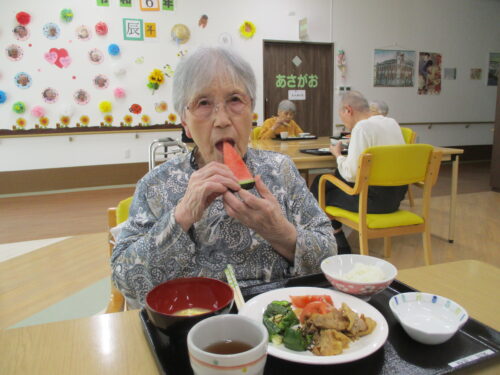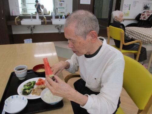 夏と言えば赤い赤い西瓜ですね。シャリシャリ音を立てて豪快に頂きました。
