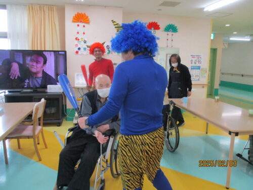 鬼に対して皆さん豆を投げて厄払いを行い健康でいい一年にしていきましょう。