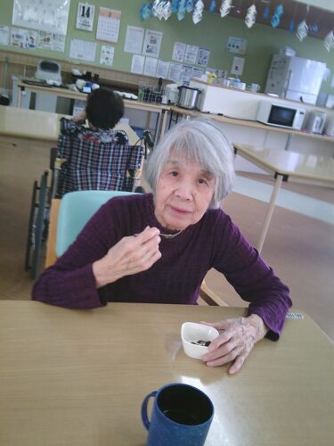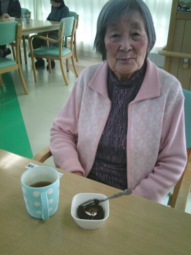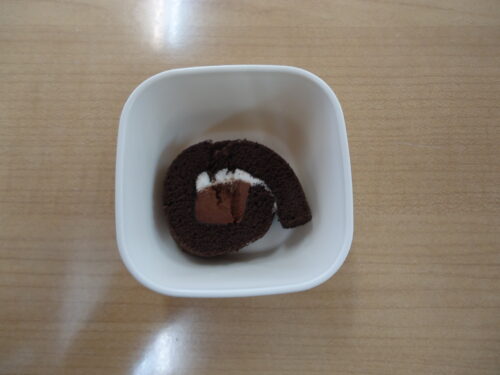 おやつの時間に、チョコ味のロールケーキが提供されました(^^)/