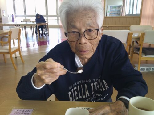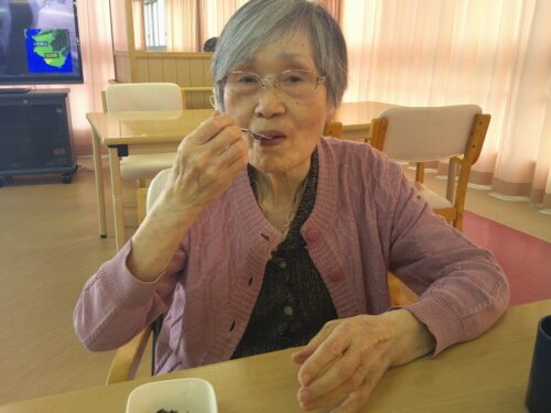 おやつの時間にチョコ味のロールケーキが提供されました(^^♪