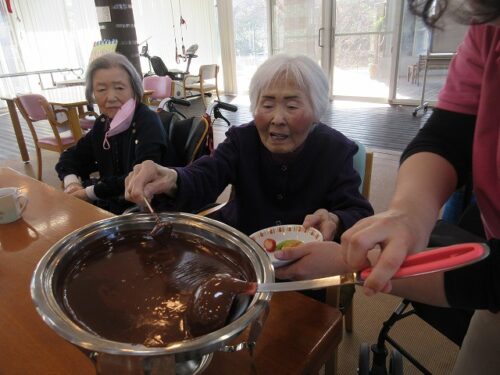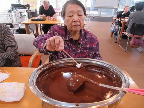 中の原デイサービスではバレンタインデーという事で、昨日、今日と、二日間おやつで皆様に