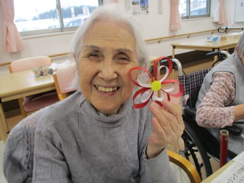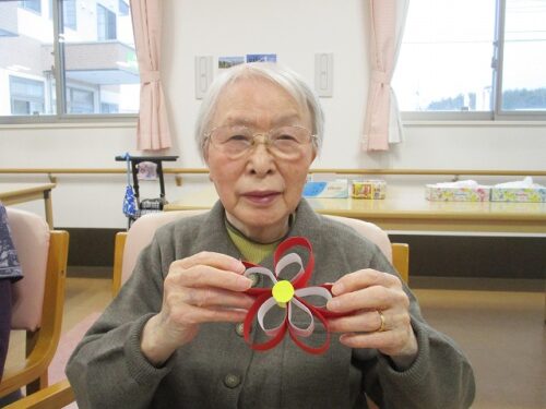 花の形をした折紙を立体的になるよう切り貼りします✂