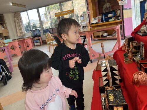 もうすぐ3月で雛人形が飾られたとの事で、みんなで見学もしました🎎