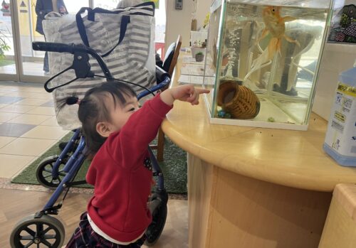 施設の入口のお魚を見つけたので、駆け寄っていきました🐟🐟