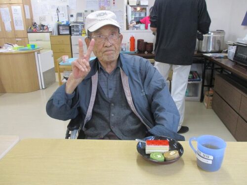 活力朝礼の皆勤の賞状を受け取られ、嬉しそうにされていました。