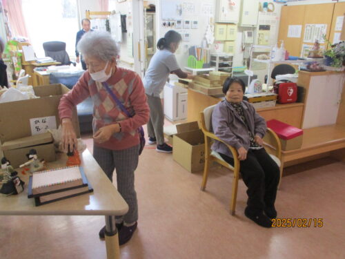 職員と手分けして、箱から一つずつ出していってますね(*^▽^*)