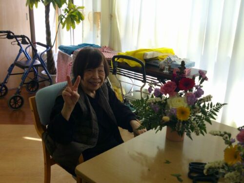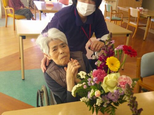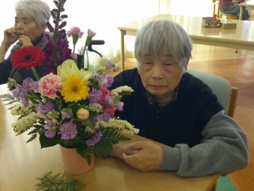同じお花を使ったアレンジメントですが、入居者様それぞれのセンスにより、