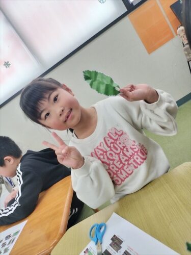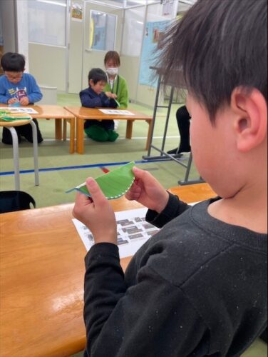 葉脈の折り筋はじゃばら折りでしたが、みんな折ることができました👏