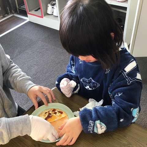 間違いない組み合わせで、子どもたちも「おいしい!お好み焼きみたい」と笑顔で食べていました😊