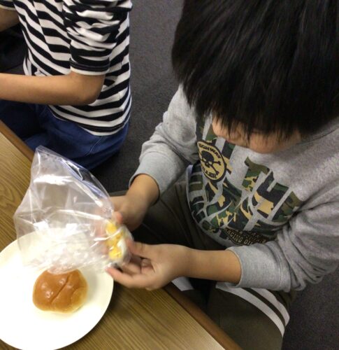 まず、ビニール袋にゆで卵🥚💕を入れて指でつぶします