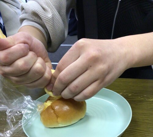 切れ込みを入れたパン🥖に絞り出して✨