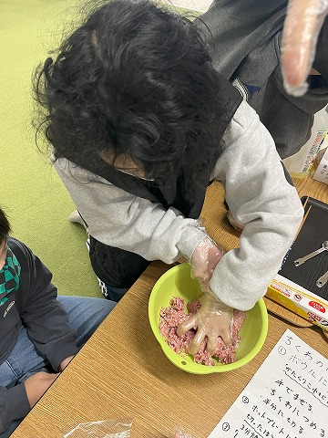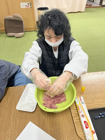 ひき肉にしょうがや片栗粉など材料を入れていきます🧑🍳