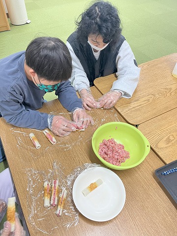 「量はこれくらい?」と職員に確認しながら取り組んでいました😌