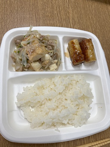 厚揚げとひき肉のだしあんかけのおかずとご飯ものせて