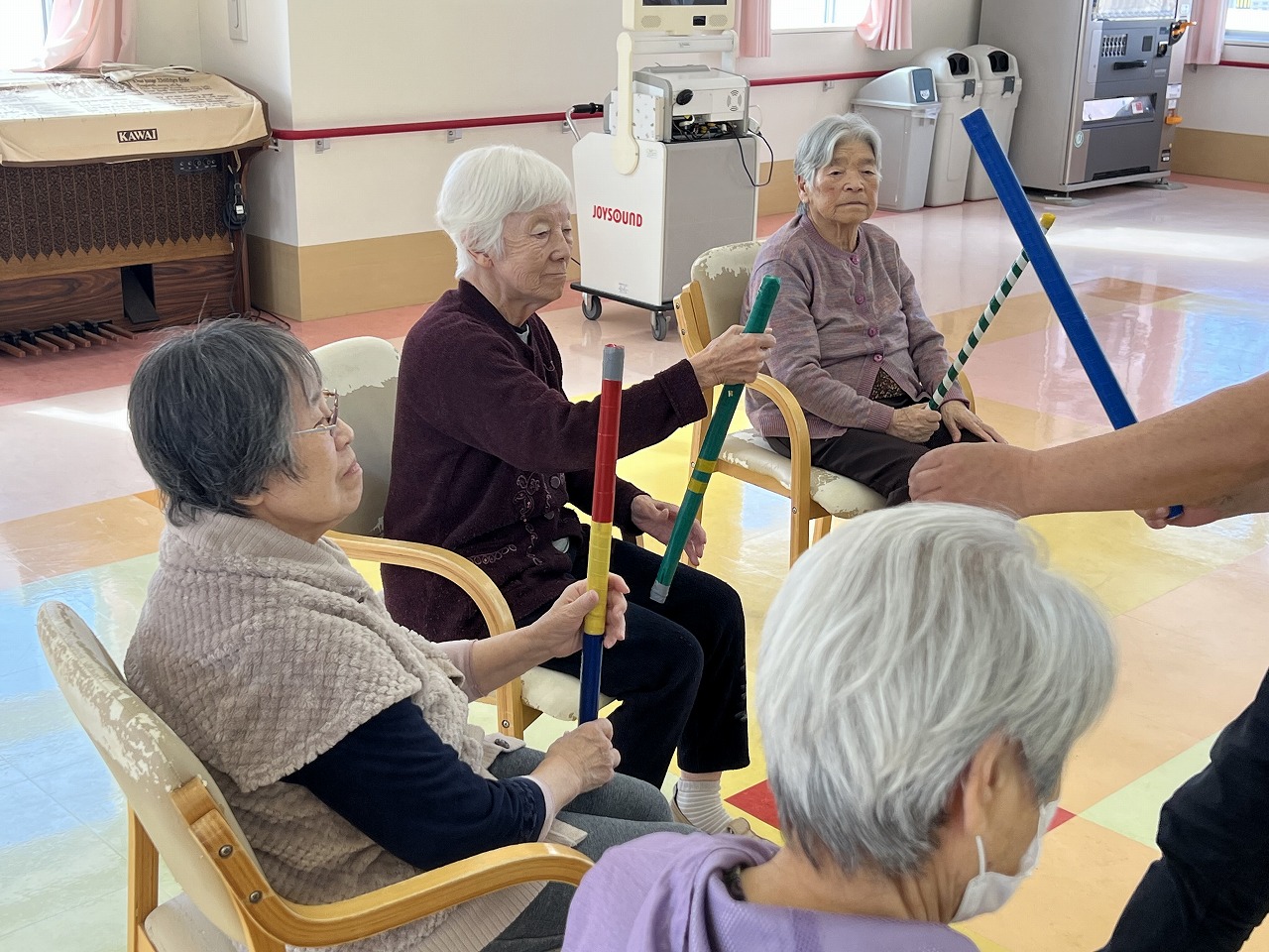 さわやか東神楽館 さわやか東神楽館 最新情報 リハビリの様子 2025-02-20 2025-02-20 本日も皆様元気よくリハビリに参加されています🎵 棒を使った体操や、早口言葉、歌など・・・(^^♪ 毎日楽しく元気よく、リハビリが行われています☺