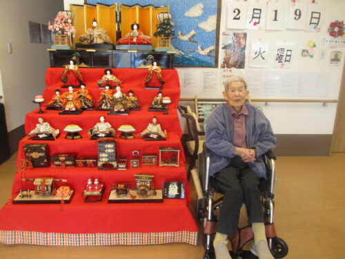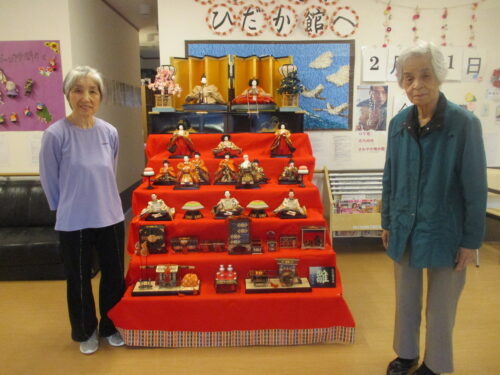 玄関にひな人形🎎を飾ったので女性入居者様と👧👧👧