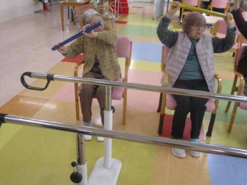 棒体操で体をストレッチ♪柔軟性の維持に必要ですね!