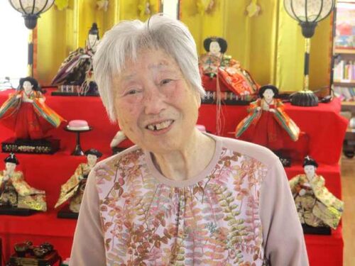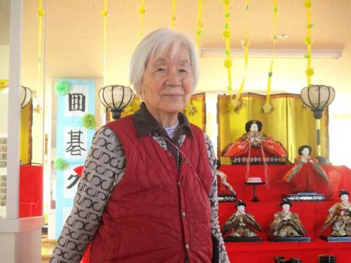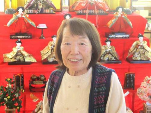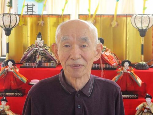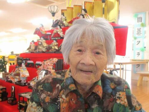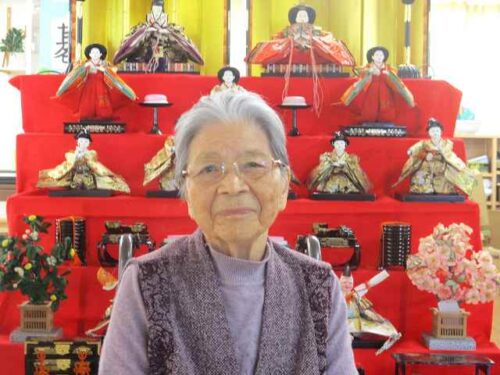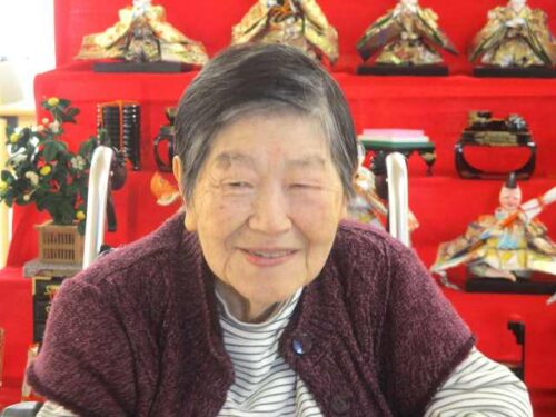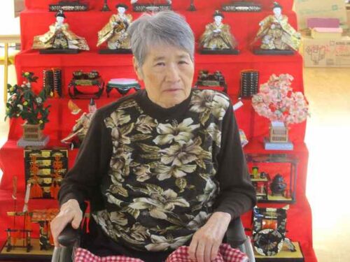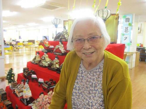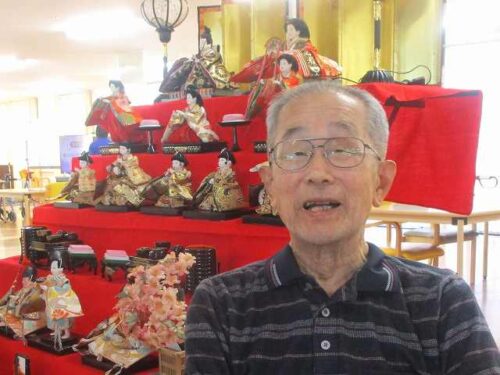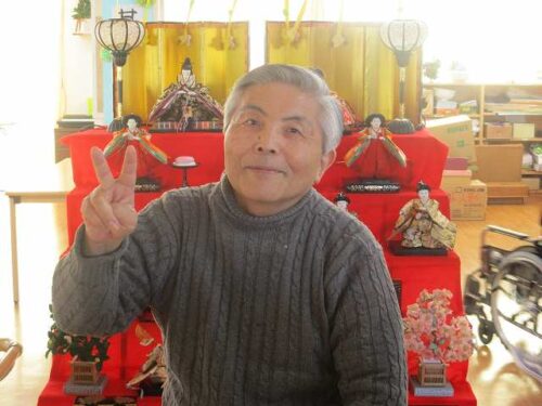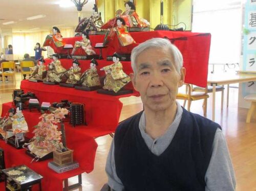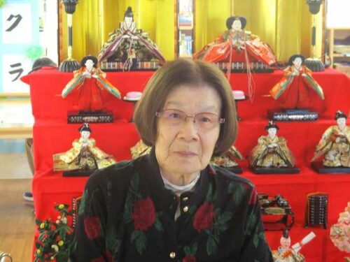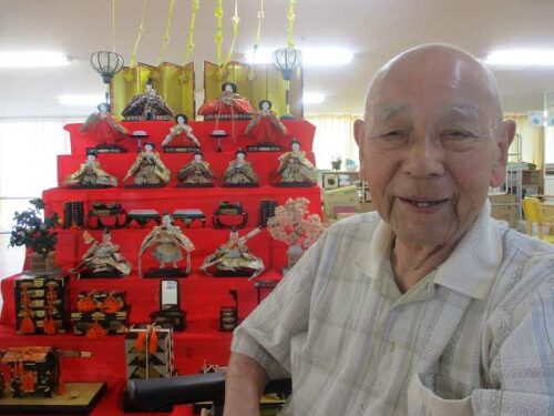 現在柏館では正面玄関にひな壇🎎を置いています。