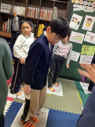 先日活動で「新聞紙じゃんけん」を行った様子についても、