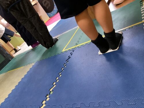 新聞紙じゃんけんでは、バランス感覚や集中力を育む事が期待されます。