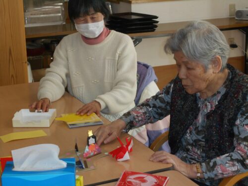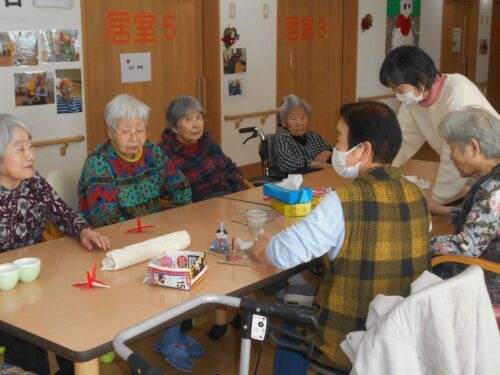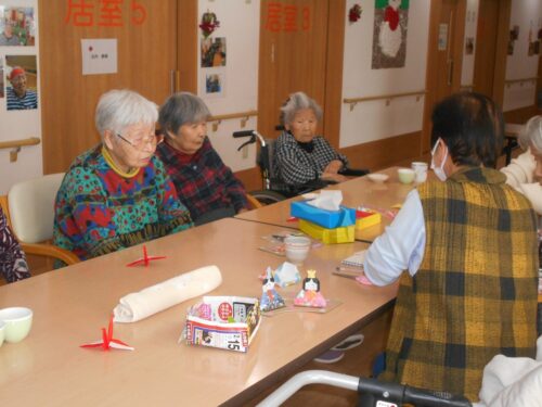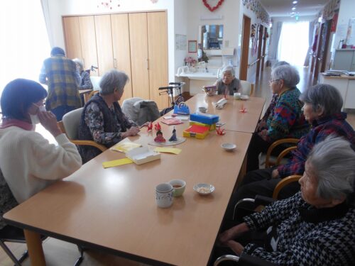 つつじユニットの様子 【ボランティアの方々と雛祭りの準備】