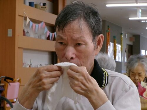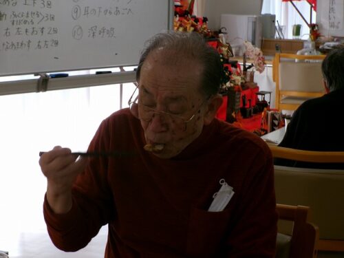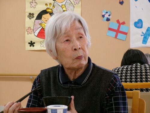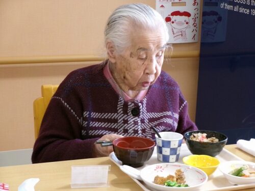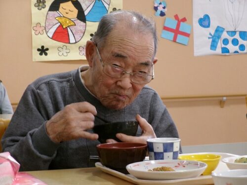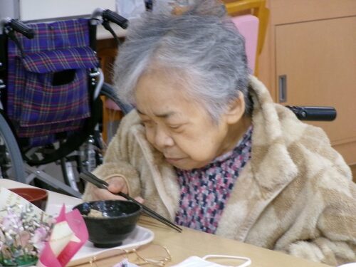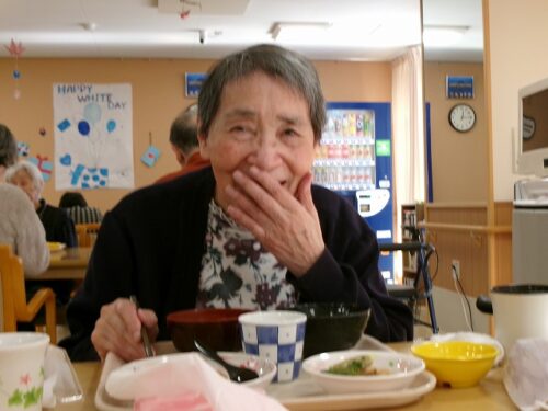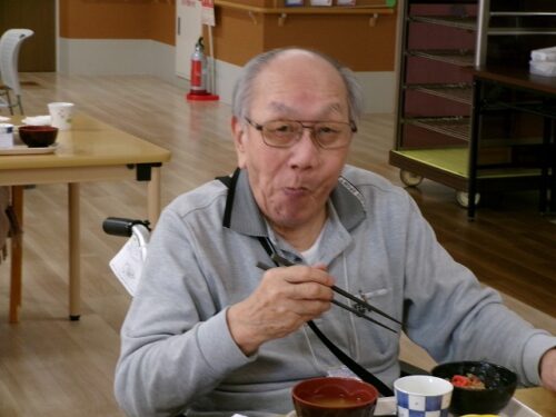 初めての行事食に笑顔です