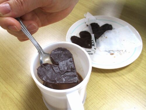 ホットチョコに、💖チョコをのせて