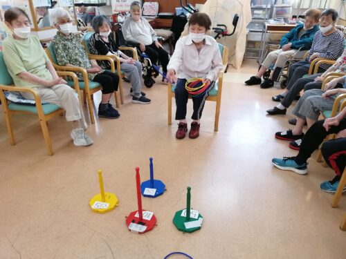 さわやかパークサイド新川 輪投げ 2024-07-08 2024-07-10 こんにちは。パークサイド新川です☀ 本日はデイサービスのレクリエーションの様子を。 罰ゲーム回避のため、真剣な表情が見られました😁 PS新川 西山