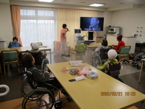 最後にはご入居者様から職員さんに歌ってほしいと話され、カラオケの会になりました。