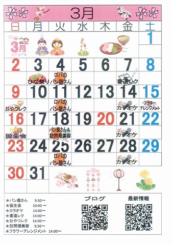 3月度のカレンダーです😊📅 [さわやか田川館]