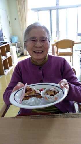 甘いもの大好きな男性入居者様も笑顔で召し上がられていました。