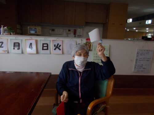 さわやかレークサイド中の原 旗揚げゲーム 2025-02-24 2025-02-24 4階フロアで、赤上げて~・白下げて~と楽しそうな声が聞かれていました。 皆さま一生懸命に旗を上げておられたようです。