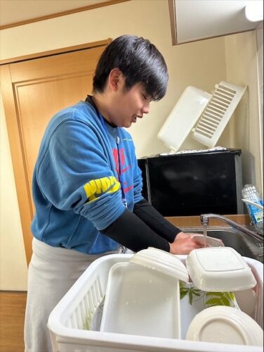 みんなが食べた後の食器を丁寧に洗ってくれます。手慣れた手つきです。