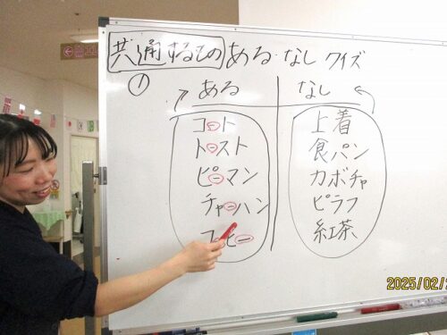 さわやか桜参番館 活力朝礼♪【さわやか桜参番館】 2025-02-24 2025-02-24 こんにちは!さわやか桜参番館です! 今日は先日行った、活力朝礼の様子をお伝えします! まずは体操から~♪ 体を動かしたあとは、脳トレです! 今日は「ある・なしクイズ」です! 皆様、一生懸命考えてくださっておりました! 担当:細川