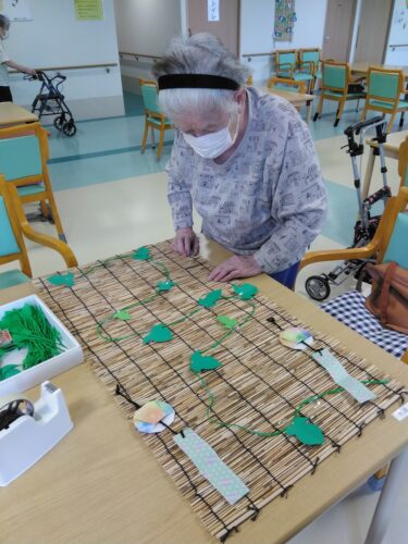 今日は利用者様の力をお借りしてすだれの飾り物を製作しました🌻🌻