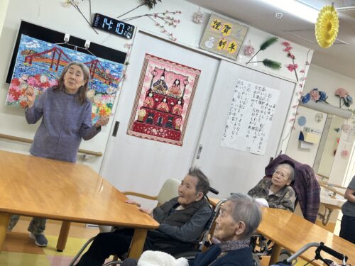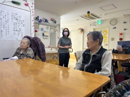 皆様が良く知っている「瀬戸の花嫁」「リンゴの唄」などを歌った後に、ご入居者様のリクエスト曲を歌いました♪