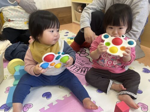 コロコロのおもちゃで大はしゃぎして遊んでいました!