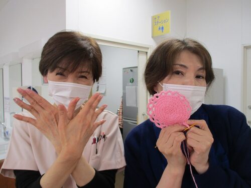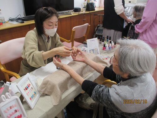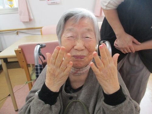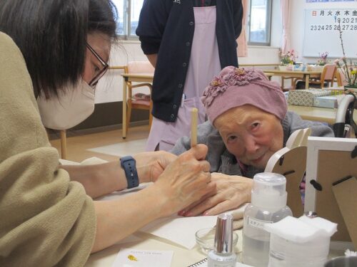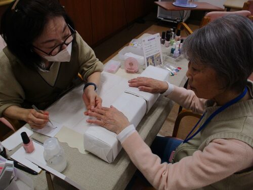 桜参番館の入居者様にネイルを塗ったり