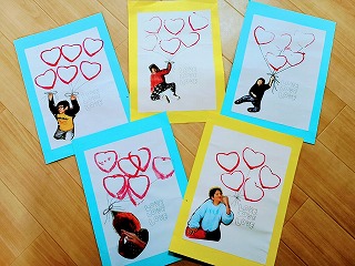 みんなの写真を貼ってバレンタインカードの完成🎈🎈🎈