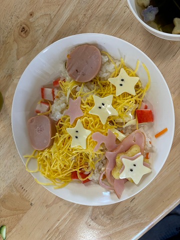具材を切ったり、型抜きしたりしてオリジナルのちらし寿司を作りましたよ😀
