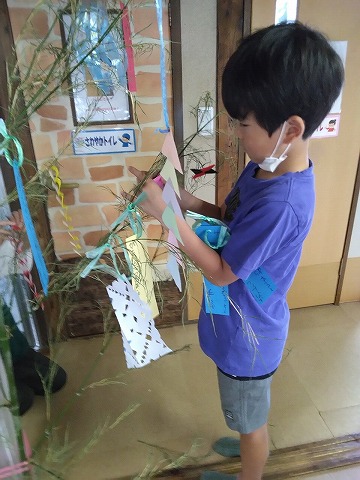 午後からは、笹に飾る飾りを作ったり短冊に願い事を書きました